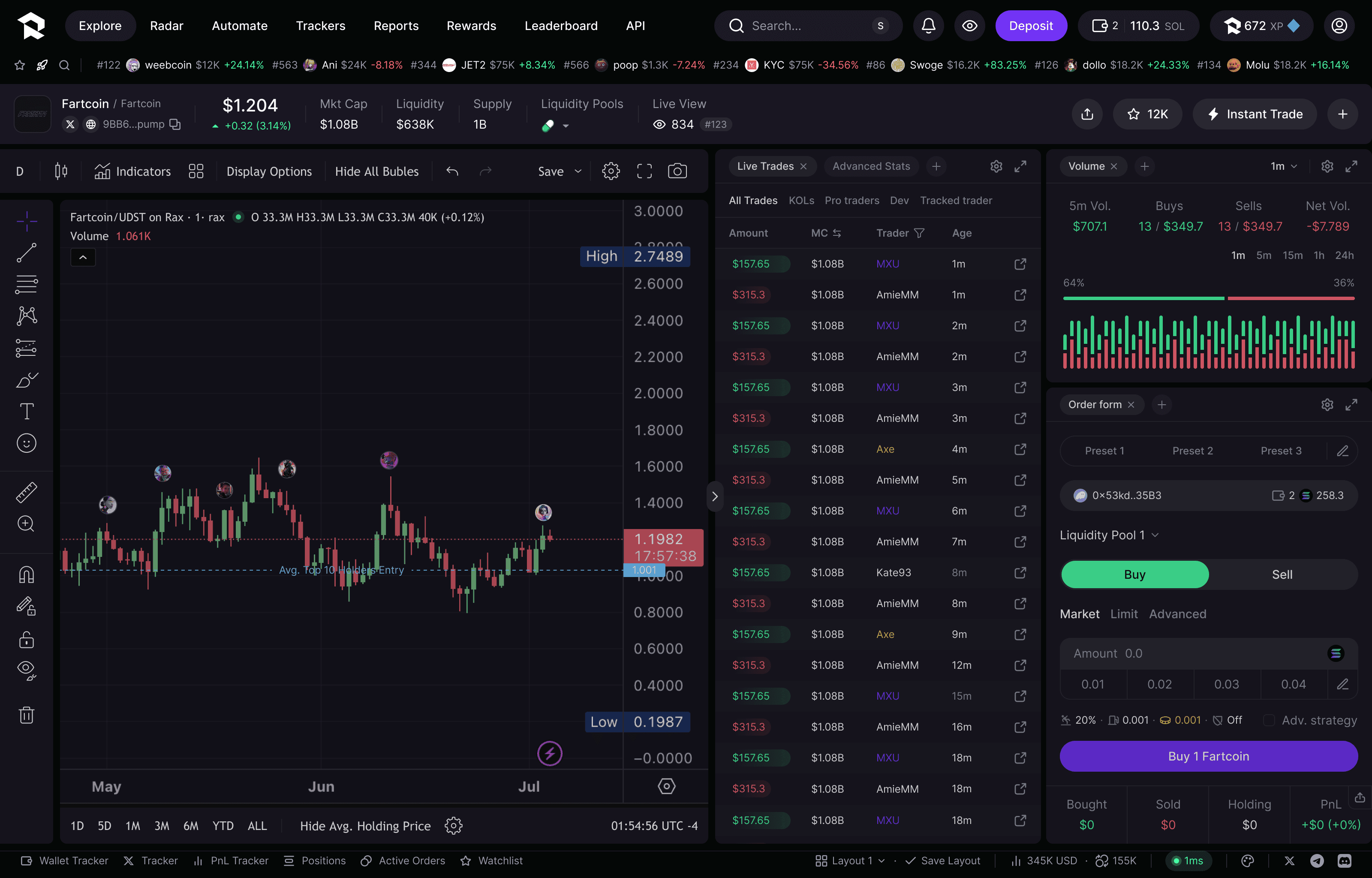 Rax delivers advanced blockchain analytics in real time, consolidating on-chain data across protocols and liquidity pools. This complete, live view provides sharper insights that power faster, smarter, more confident trading.